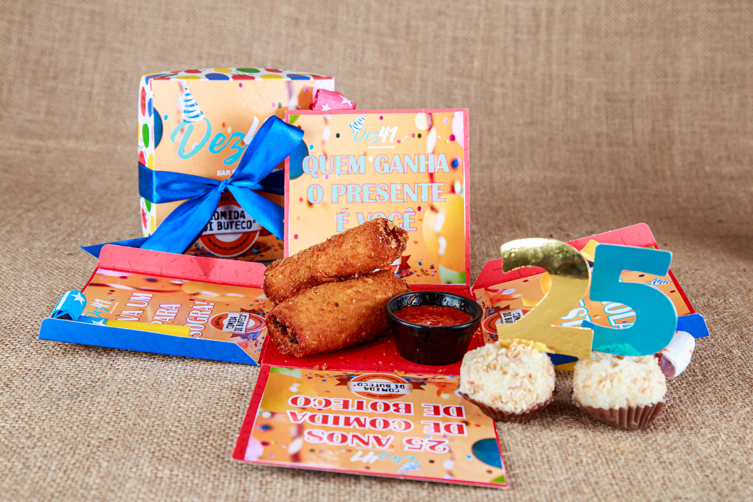 Arroz de rabada com agrião e muçarela, envolvido numa fina camada de pão artesanal e empanado num mix de sucrilhos salgado e panko. Acompanha molho de pimentões assados. E, de brinde da sogra baiana, duas cocadas cremosas.