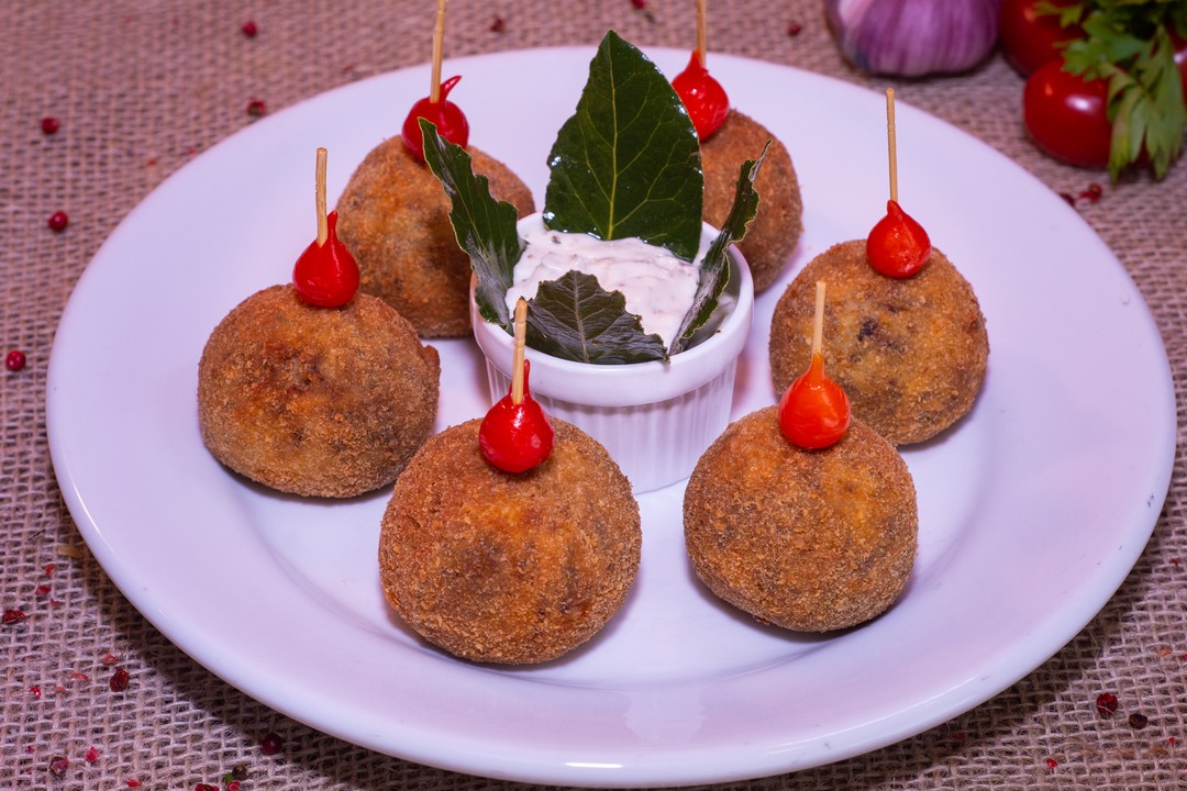 Bolinho de mandioca com carne de sol.