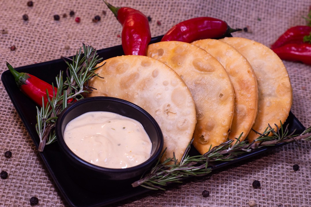 Massa de pastel crocante, com recheio de costela bovina no bafo, temperada com ervas e cebola marinada. Acompanha molho da casa.