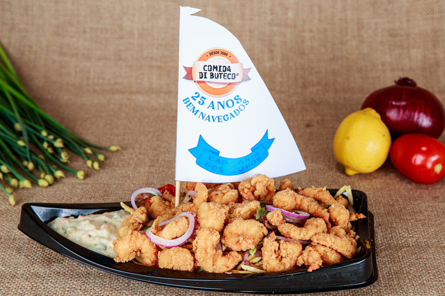 o petisco é uma evolução do nosso tradicional “camarão à tubiacanga”, porém com um toque a mais: um refogado de lulas cozidas na cachaça.