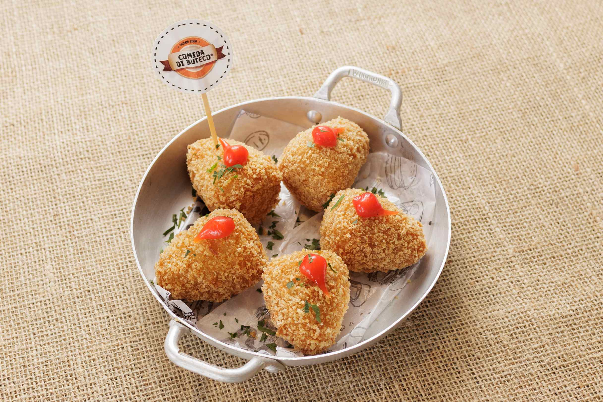 bolinho de catupiry com recheio de carne-seca e tomate seco.