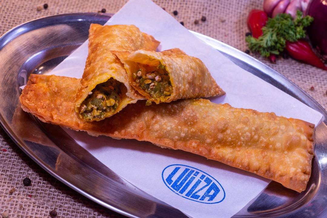 dupla de pastéis recheados com quiabo puxado no dendê.