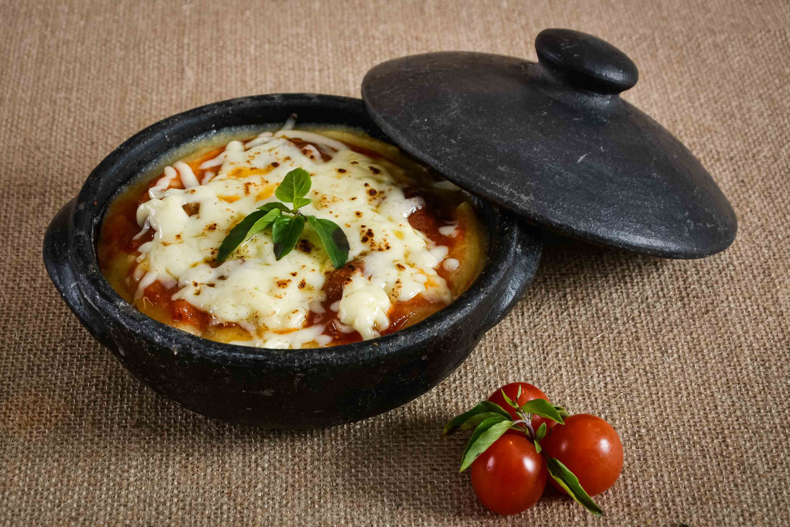 Almôndegas ao molho de tomates, servidas com polenta.