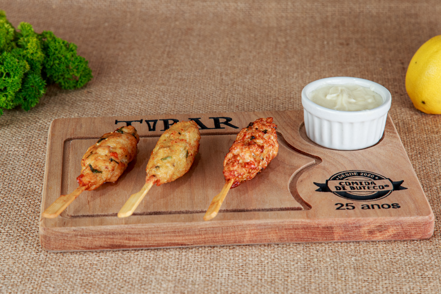 Deliciosas kaftas de peixe, camarão e bacalhau, com molho de queijo para acompanhar.