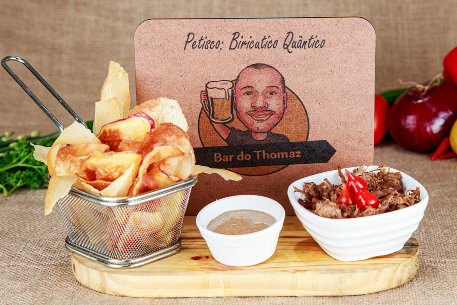 carne assada desfiada, tão deliciosa que chega a ser um pecado de tão quântica. Com ela vem um mix de raízes e um molho que é segredo da casa.