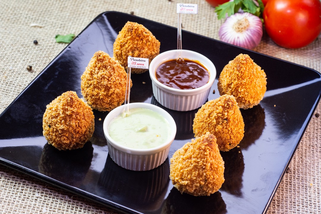 coxinha de massa de milho com recheio de costelinha com catupiry.